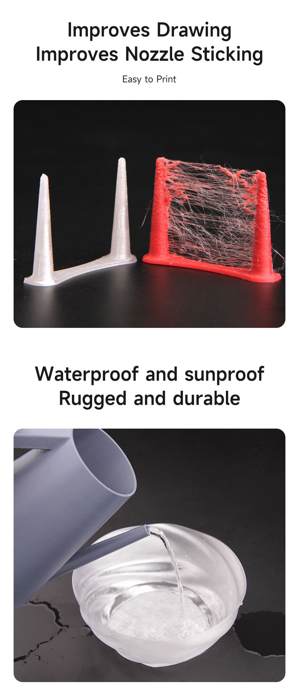 eSUN PETG-Basic combines the advantages of PLA and ABS, with excellent clarity, light transmission and high gloss. And it has good impact resistance, good mechanical strength, weather resistance and chemical resistance, which can serve as a good cost-effective choice for you.